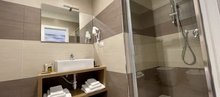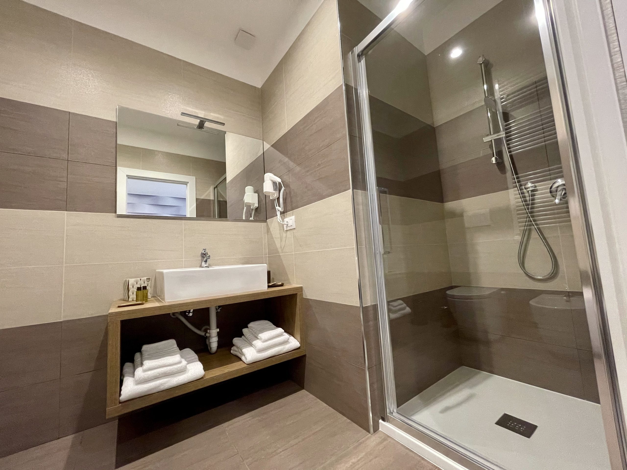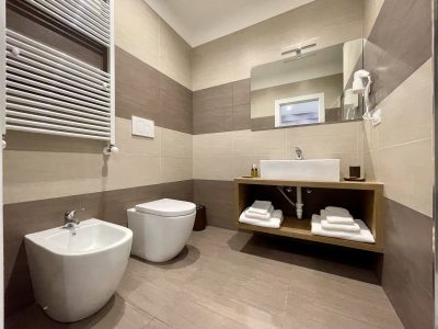 La camera dispone di un ampio bagno privato in camera completo di set di asciugamani e